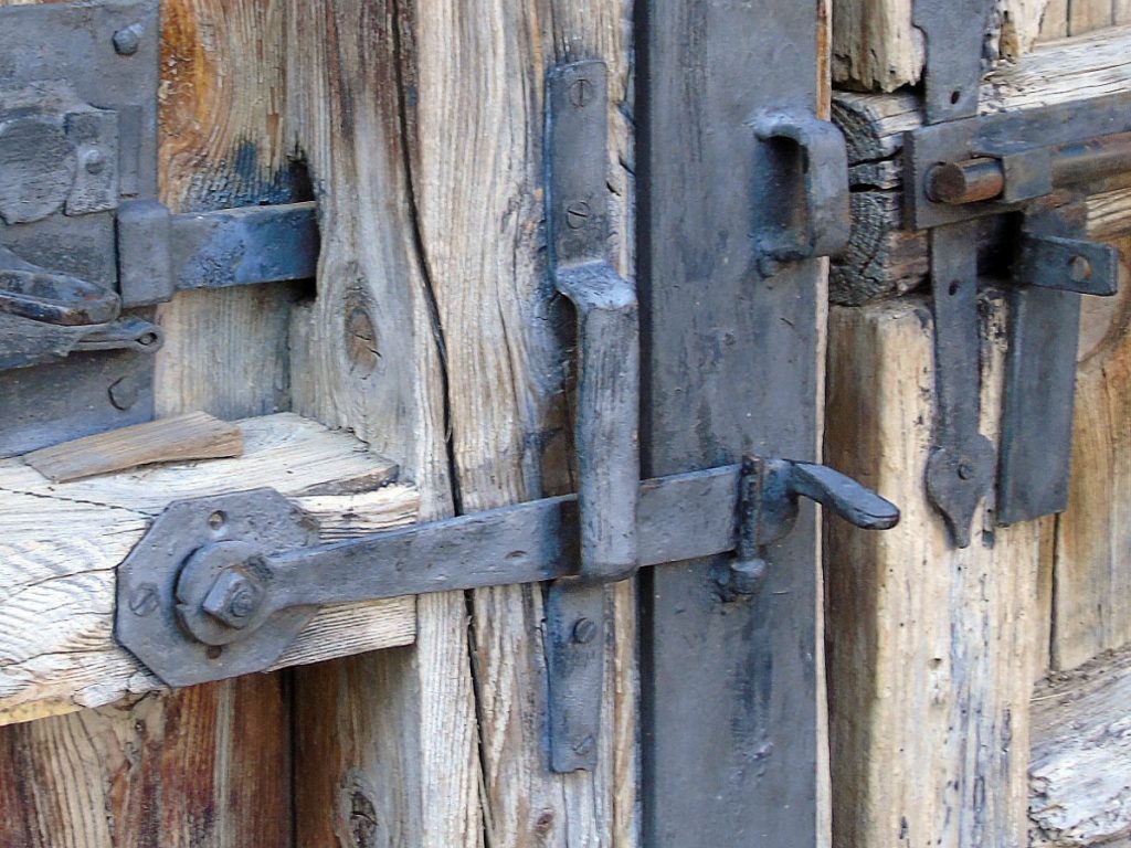 Existen otros sistemas para bloquear el cierre de puertas y ventanas mediante candadosCerradura suelta contenida en una caja de metal que, por medio de armellas, asegura, puertas, ventanas, etc.. Tal es el caso de los travesaños Pieza de madera o hierro que atraviesa de una parte a otra de algo metálicos que cruzan un vano de lado a lado del marco y que se fijan a él por medio de una bisagraHerraje de dos piezas con un eje común que sirve para unir dos superficies, permitiendo el giro de ambas o de una sobre la otra o eslabón situado en uno de sus extremos. En el extremo contrario, estos elementos suelen contar con un ojal que abraza una armella situada en el otro lado del marco y que se bloquea con un candado.