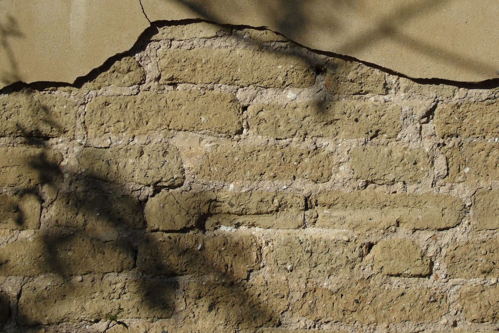 Muro de adobe con cantoneras de ladrillo